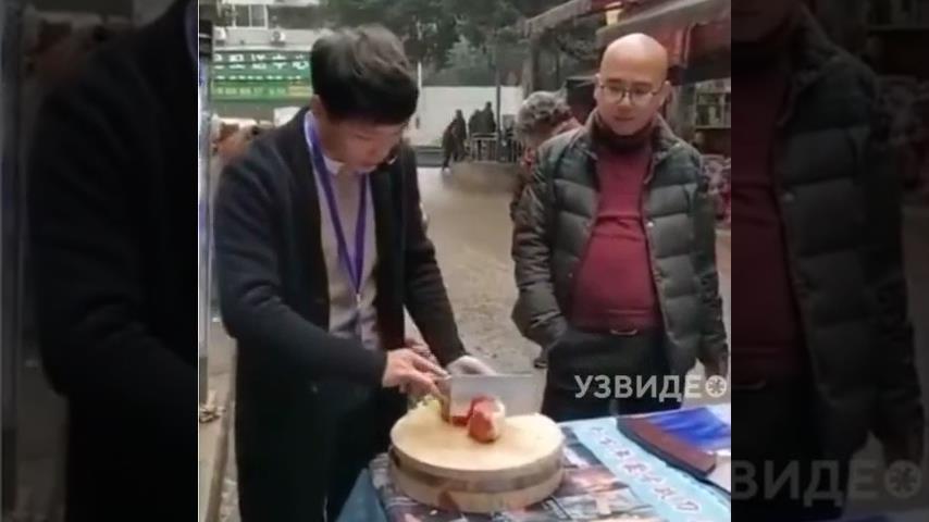 Σε μια λαϊκή αγορά στην Κίνα, ένας πωλητής μαχαιριών δείχνει πόσο κοφτερά είναι τα μαχαίρια του κόβοντας ένα κομμάτι κρέας. Όμως ένας περαστικός θα αποκαλύψει τον απατεώνα, προτείνοντας του να κόψει ένα από τα κρέατα που μόλις έχει αγοράσει.