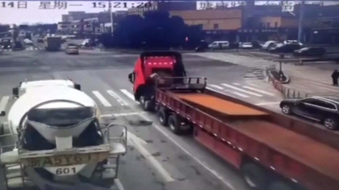 Τη Δευτέρα 14 Δεκεμβρίου του 2020 στο Χανγκζού της Κίνας, ένα φορτηγό που μετέφερε χαλύβδινες πλάκες φρέναρε απότομα σε μια διασταύρωση. Οι πλάκες γλίστρησαν από το τρέιλερ πριν καταστρέψουν ολοκληρωτικά την καμπίνα του φορτηγού. Ευτυχώς, ο οδηγός τραυματίστηκε ελαφρά.
