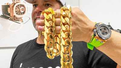 Κοσμηματοποιοί στο Μαϊάμι των Ηνωμένων Πολιτειών, μας δείχνουν τα στάδια κατασκευής μιας μεγάλης χρυσής αλυσίδας βάρους 1 κιλού.