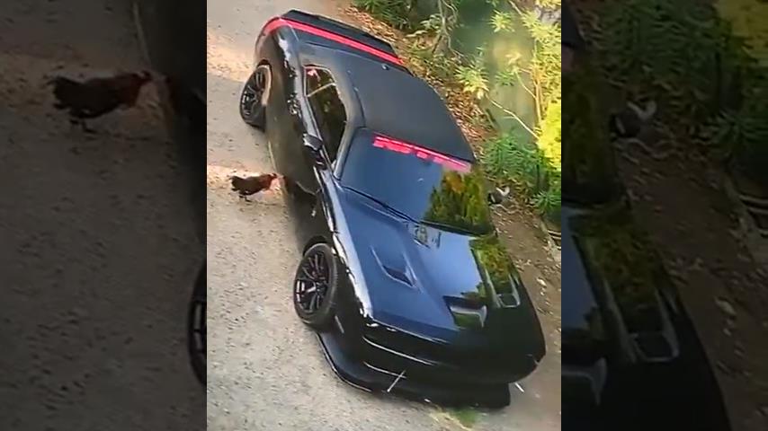 Ένας κόκορας αποφάσισε να ξεσπάσει τον θυμό του πάνω σε ένα γυαλισμένο σπορ αυτοκίνητο.