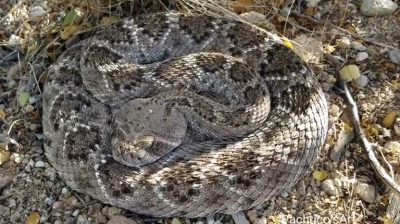 Ένας κροταλίας ξυπνάει ξαφνικά και παίρνει θέση άμυνας μπροστά από μια κάμερα.