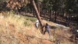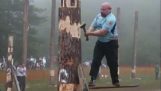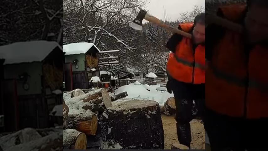 Οι εντυπωσιακές ικανότητες ενός ανάπηρου άνδρα, ο οποίος μπορεί να κόβει ξύλα κρατώντας το τσεκούρι με το σαγόνι του.