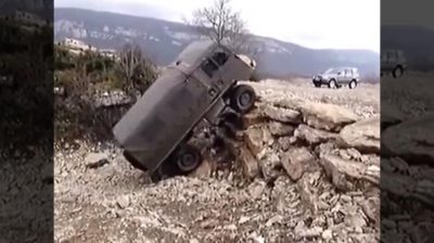 Αυτό είναι ένα Pinzgauer, ένα μικρό στρατιωτικό φορτηγό με κίνηση στους 4 τροχούς, που είναι κατασκευασμένο για κίνηση σε ανώμαλα εδάφη.