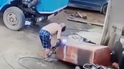 Ένας μηχανικός στη Ρωσία, προσπαθεί να συγκολλήσει ένα ντεπόζιτο φορτηγού, το οποίο όμως δεν έχει αδειάσει. Το καύσιμο θα πάρει φωτιά, η οποία θα σβήσει με πολύ μεγάλη δυσκολία.
