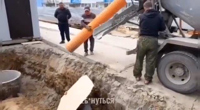 Εργάτες στη Ρωσία είχαν μια έξοχη ιδέα για να οδηγήσουν το τσιμέντο μέσα σε μια τρύπα. Όμως η αυτοσχέδια ράμπα που έφτιαξαν δεν άντεξε το βάρος.