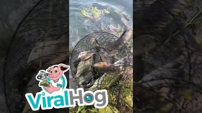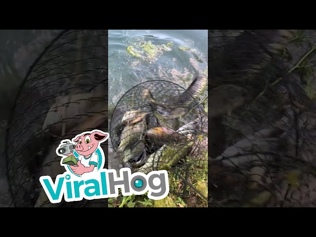 While fishing in a pond in Petersburg, Ill., A man notices a snake on the surface of the water diving towards his basket containing a few fish. He then removes the basket from the water, but the reptile also rises to the surface and repeatedly tries to enter the basket to take a fish.