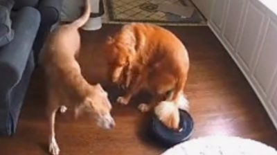 Ο Leo το γκόλντεν ριτρίβερ ξάπλωσε δίπλα σε μια ρομποτική ηλεκτρική σκούπα. Μετά από λίγα δευτερόλεπτα, οι βούρτσες της σκούπας μπερδεύτηκαν στην ουρά του σκύλου. Ελαφρώς πανικοβλημένος, ο Leo ανέβηκε τις σκάλες και ξεφορτώθηκε το ενοχλητικό παράσιτο.
