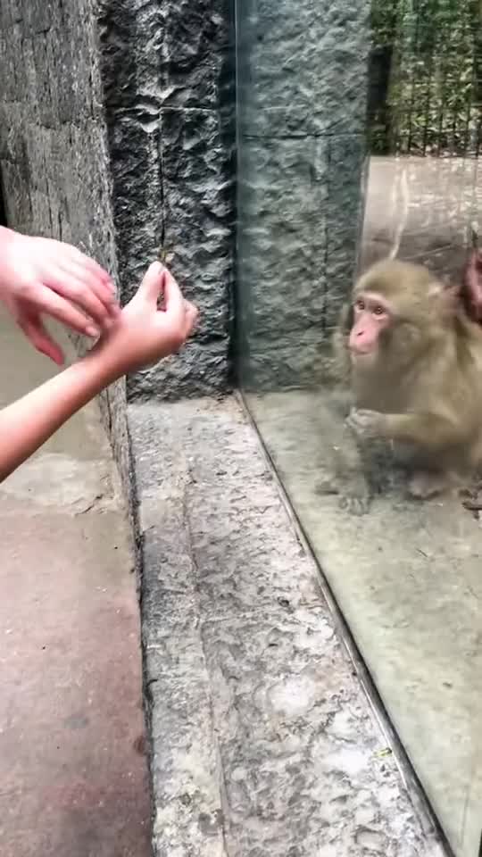 Showing magic tricks to a monkey