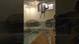 Σε ένα δάσος στο Port Alberni του Καναδά, ένα ελικόπτερο προσγειώνεται σε μια μικρή ξύλινη πλατφόρμα για να παραλάβει έναν ξυλοκόπο.