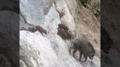 Τρεις μικροί αγριόχοιροι μένουν πίσω, όταν η μαμά τους και τα αδέρφια τους περνούν πάνω απόε ένα βράχο σε ένα ποτάμι. Μετά από μια σύντομη περιπέτεια, θα καταφέρουν να φτάσουν και οι τρεις κοντά στη μαμά τους.