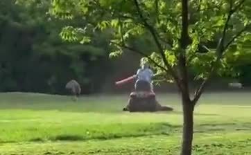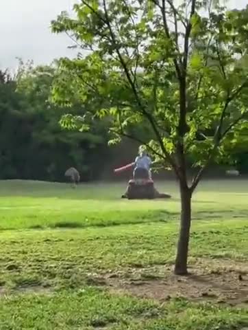 Territory war between a lawn tractor and emus.