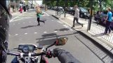 Καθώς κοιμάται ανέμελος πάνω στο σκούτερ του, ένας άνδρας θα ξαφνιαστεί από έναν θόρυβο δίπλα του.