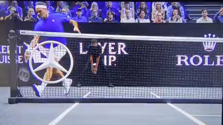 Στον τελευταίο του αγώνα στο Laver Cup 2022, ο Roger Federer πετυχαίνει έναν απίθανο πόντο περνώντας τη μπάλα μέσα από ένα άνοιγμα στο φιλέ.