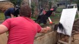 Μια όμορφη ζωγραφιά ενός νυχτερινού τοπίου με τη χρήση σπρέι και άλλων μη συμβατικών μεθόδων.