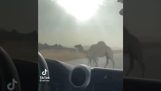 Deer get near a garage to have a snack