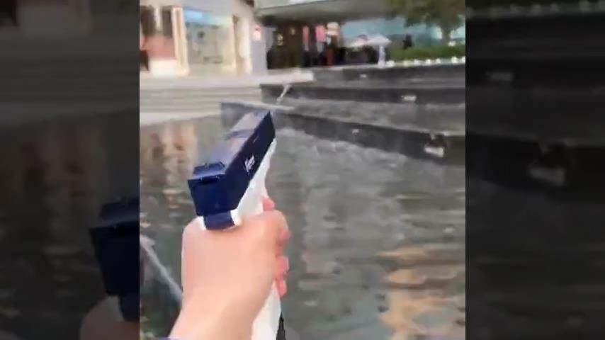 Ένα νεροπίστολο που παίρνει νερό από μια γεμιστήρα και το εκτοξεύει με πίεση σε μικρές δυνατές ριπές.
