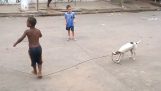 Ένας σκύλος παρακολουθεί με ενδιαφέρον στην τηλεόραση μια παρέα ανθρώπων να τρώνε σε ένα εστιατόριο Ξαφνικά ένας από αυτούς απλώνει το χέρι του με ένα κομμάτι πιτας κάτω από το τραπέζι, και ο πεινασμένος σκύλος πλησιάζει την οθόνη…