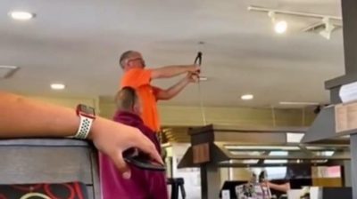 Σε ένα εστιατόριο, ένας άνδρας προσπαθεί να κόψει ένα ηλεκτρικό καλώδιο που προεξέχει από την οροφή, με μια πένσα. Μια πολύ κακή ιδέα, καθώς το καλώδιο ήταν συνδεδεμένο στο ρεύμα.