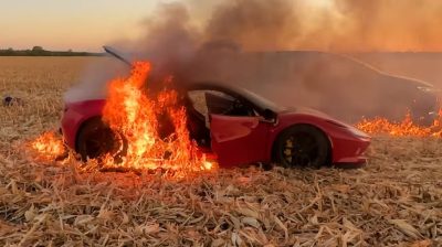 Στο Waco του Τέξας, ο youtuber WhistlinDiesel δοκίμασε να τρέξει με μεγάλη ταχύτητα με μια Ferrari F8 σε ένα ξηρό χωράφι με καλαμπόκι. Το αυτοκίνητο των 400.000 δολαρίων πήρε φωτιά, αφού το ξηρό καλαμπόκι ανεφλέγη πάνω στα πυρωμένα δισκόφρενα.