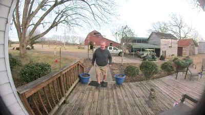 Ένας άντρας θα τρομάξει ξαφνικά όταν προσπαθεί να ανοίξει την μπροστινή πόρτα του σπιτιού του. Δεν είχε δει έναν κροταλία που προσπάθησε να τον δαγκώσει. Αν παρατηρήσετε, η γάτα στα δεξιά προσπάθησε να τον προειδοποιήσει.