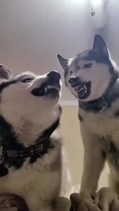 Funny Huskies playing