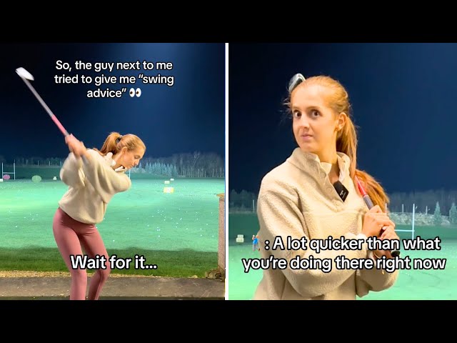 Random man trying to explain to pro golfer Georgia Ball how to swing in golf.