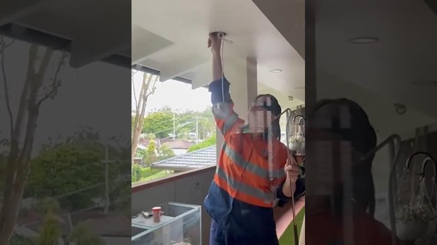 Μια επαγγελματίας αφαιρεί έναν μεγάλο πύθωνα από το ταβάνι ενός σπιτιού, το οποίο είχε επιτεθεί νωρίτερα σε ένα οπόσουμ.