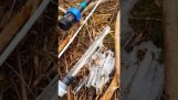Ένας ιπποτικός νεαρός βοηθά την κοπέλα του να διασχίσει ένα ρυάκι