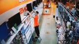 Πίσω από τον πάγκο του, ένας μικροπωλητής παιχνιδιών Slinky στην Κίνα, κάνει μια καταπληκτική επίδειξη του εν λόγω παιχνιδιού. Το...