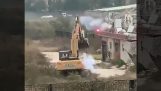 Στην Τζακάρτα της Ινδονησίας, ένας εκσκαφέας τοποθετήθηκε με γερανό πάνω σε ένα κτίριο με σκοπό να το κατεδαφίσει. Όχι και...
