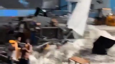 Μια μεγάλη δεξαμενή με νερό σπάει στα πλατό για την ταινία “The India House”.