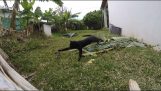 Βγαίνοντας για πρώτη φορά στο χιόνι, ένας σκύλος μετανιώνει αμέσως και κάνει μια γρήγορη μεταβολή.