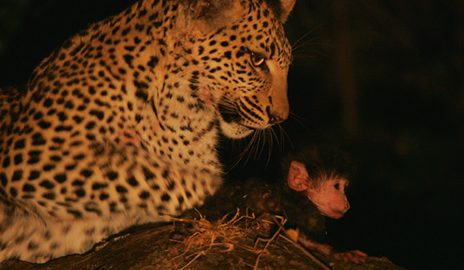 το μονο ζωο στη γη που σκοτωνει οχι γιατι πειναει αλλα για παιχνιδι ,(διαστροφη ενστικτου) ειναι η κοινη μικρη οικοσιτη γατα ,η γαλη,,αυτο δεν υπαρχει στις μεγαλες αγριες γατες,,στη προκειμενη 2χρονη λεοπαρδαλη αν δεν εχει κανει ακομα γεννα στη ζωη της αποκλειεται το μητρικο ενστικτο , οποτε μαλλον ειναι το ξαφνιασμα που δεν αντιδρα το θυμα της,, μακαρι να μην ειναι διαστρεβλωμενο το τελος απο την νασιοναλ γεωγρ. χαριν εντυπωσεων ,,