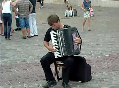 Ένας μουσικός ερμηνεύει εξαιρετικά το “Καλοκαίρι” του Vivaldi με το ακορντεόν του σε πλατεία της Βαρσοβίας.