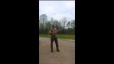 Ένας άντρας εγκαθιστά έναν φράχτη χρηιμοποιώντας μια μηχανή τοποθέτησης πασσάλων. Όμως δεν είχε μελετήσει σωστά την κατασκευή του, και τρυπά...