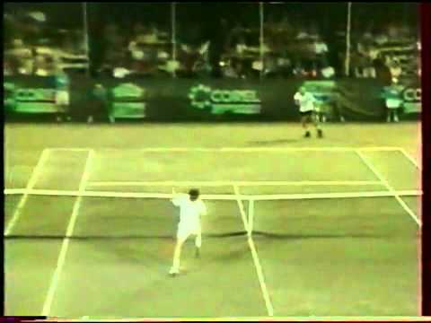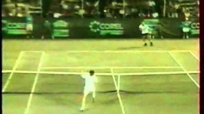 Ο τενίστας Jimmy Connors κάνει ένα απίστευτο χτύπημα πετώντας την ρακέτα στον αέρα και κερδίζει τον πόντο.