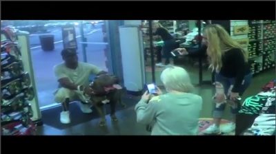 Ο “Rock” είναι ένα από τα μεγαλύτερα σε μέγεθος πίτμπουλ στον κόσμο, και έχει εκπαιδευτεί ως σκύλος οδηγός και βοηθός για άτομα με ειδικές ανάγκες. Είναι πολύ φιλικός με τους ανθρώπους και το αφεντικό του τον πάει μια βόλτα στα καταστήματα καθώς καταγράφει τις αντιδράσεις των περαστικών.