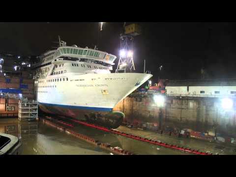 Εντυπωσιακή δουλειά στο ναυπηγείο Blohm+Voss του Αμβούργου, όπου ένα κρουαζιερόπλοιο κόβεται στη μέση και επεκτείνεται κατά 30 μέτρα.