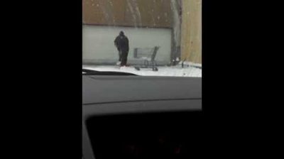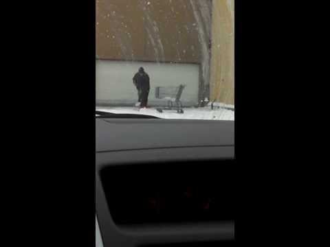 Υπάλληλος έξω από κατάστημα Wal-Mart στις ΗΠΑ προσπαθεί να καθαρίσει το χιόνι…