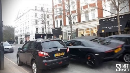 Η άτυχη στιγμή της σύγκρουσης μεταξύ μιας Lamborghini Aventador (αξίας 400.000€) και δύο άλλων αυτοκινήτων στην οδό Sloane του Λονδίνου.