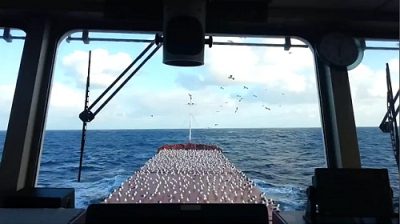 Εκατοντάδες γλάροι ξεκουράζονται στο κατάστρωμα ενός εμπορικού πλοίου στην Πολωνία. Δείτε τι γίνεται όταν ο καπετάνιος χρησιμοποιεί την κόρνα.