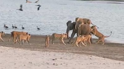 Στη Ζάμπια της Ν. Αφρικής, αφού απομακρυνθεί από τη μητέρα του, ένας νεαρός ελέφαντας επιβιώνει από μια επίθεση 14 λιονταριών. Βρίσκει καταφύγιο σε ένα ποτάμι και καταφέρνει να απομακρύνει τα αρπακτικά που του επιτίθενται επανειλημμένα. Ο θαρραλέος ελέφαντας στη συνέχεια επανεντάχθηκε στο κοπάδι του.