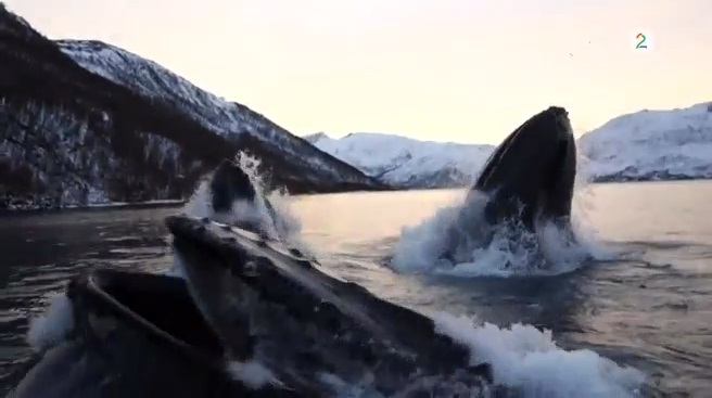Το Σάββατο 8 Νοεμβρίου σε ένα φιόρδ της Νορβηγίας, οι Svein Αasjοrd και Τrοnd Ivarsοy σταμάτησαν το σκάφος τους για να παρακολουθήσουν τις φάλαινες από απόσταση. Πρόσεξαν πως οι φάλαινες έδειχναν ένα ιδιαίτερο ενδιαφέρον στο σκάφος και άρχισαν να το πλησιάζουν. Μετά από λίγα λεπτά, 6 μεγάπτερες φάλαινες εμφανίζονται ξαφνικά στην επιφάνεια ακριβώς δίπλα τους. Οι φάλαινες βρίσκονταν στο φιόρδ για να τραφούν, κυνηγώντας μεγάλα κοπάδια από ρέγγες.