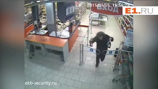 Την Πέμπτη 15 Ιανουαρίου σε ένα από τα σουπερμάρκετ της Αικατερινούπολης στη Ρωσία, ένας άνδρας προσπαθεί να φύγει τρέχοντας αφού έχει αρπάξει 3 μπουκάλια σαμπάνιας (αξίας 24€) από το ράφι. Όμως θα προδοθεί από τη χαζομάρα του, καθώς σκοντάφτει και πέφτει αναίσθητος όταν προσπαθεί να περάσει τις πύλες μονής κατεύθυνσης στην είσοδο.