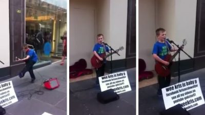 Ο 10χρονος Kris McDowall από τη Σκωτία, είναι φανατικός οπαδός των AC/DC και μεγάλο ταλέντο στην κιθάρα. Εδώ παίζει το “You Shook Me All Night Long” στον πεζόδρομο Buchanan, στη Γλασκόβη της Σκωτίας.