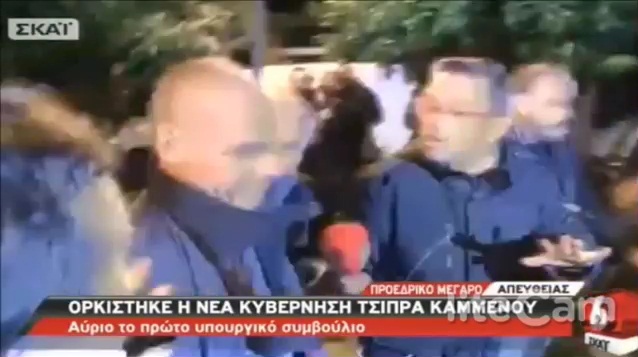 Μετά την ορκωμοσία της νέας κυβέρνησης, ο υπουργός οικονομικών Γιάννης Βαρουφάκης απαντά σε ερώτηση των δημοσιογράφων για τη συνάντησή του με τον Γερούν Ντάισελμπλουμ.