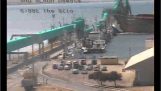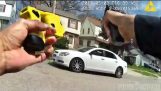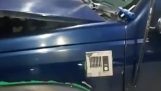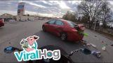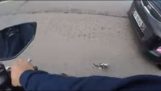 Group of unarmed Beijing police officers try, and fail, to stop car on blocked city highway.