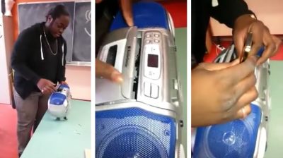 Ένας άνδρας μας δείχνει ένα έξυπνο τρικ που επιτρέπει την ενίσχυση του ήχου ενός smartphone με τη χρήση ενός κασετοφώνου. Απλά τοποθετεί το κινητό στην υποδοχή της κασέτας με το ηχείο κοντά στην κεφαλή και πατά το play. Στη συνέχεια, η ένταση του ήχου μπορεί να ρυθμιστεί από το κασετόφωνο.