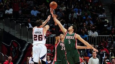Kyle Korver scores 11 points in 65 seconds during the third quarter.