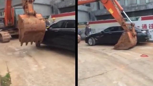 Κατασκευαστική εταιρία στην Κίνα επιστρατεύει έναν εκσκαφέα, για να μετακινήσει μερικά παράνομα παρκαρισμένα αυτοκίνητα σε χώρο εργοταξίου.